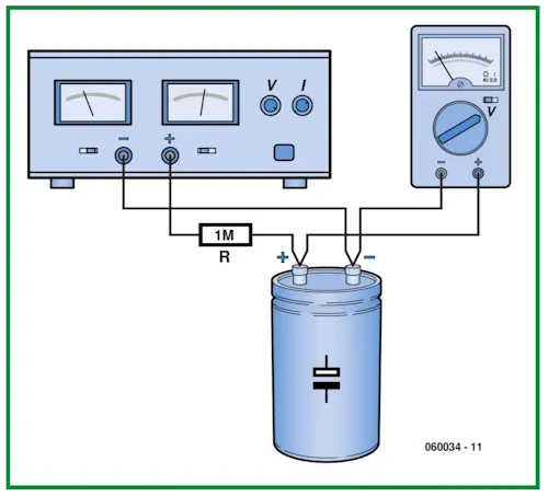 - Het proces volgen: Bij een gezonde elco zal de lekstroom langzaam afnemen naarmate de isolatielaag zich herstelt.